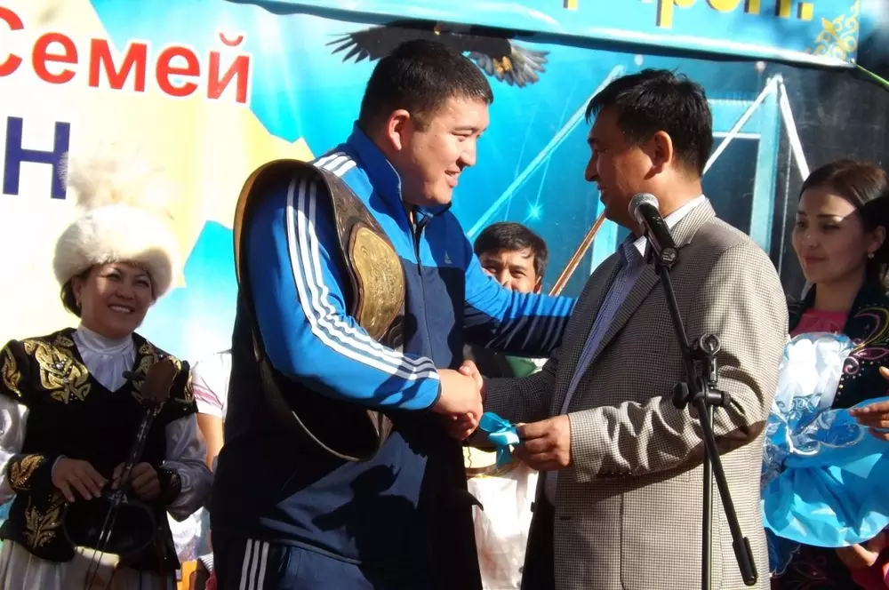 В Семее во время празднования Дня Астаны аким города Айбек Каримов подарил победителю турнира "Казахстан Барысы-2013" Айбеку Нугымарову трехкомнатную квартиру, передает корреспондент Tengrinews.kz.