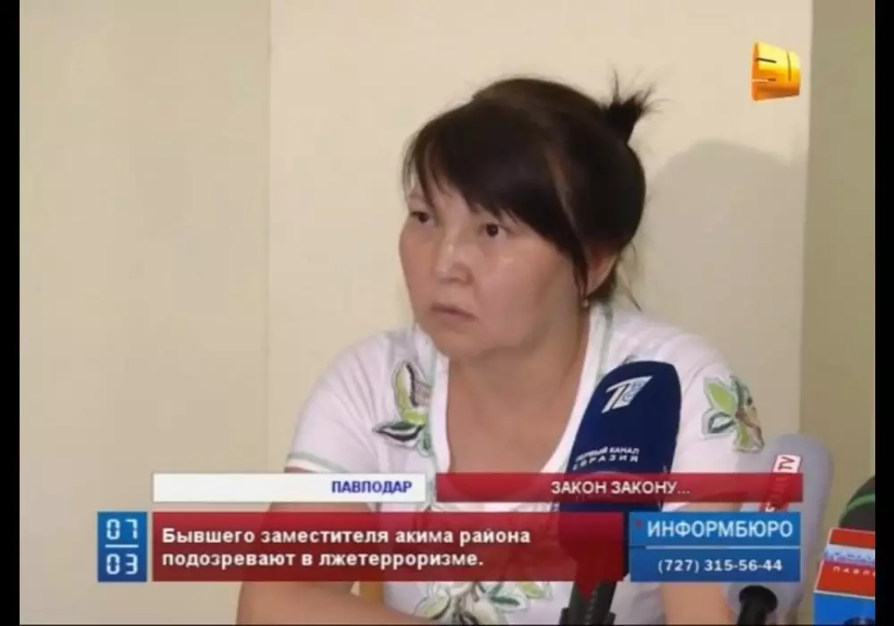 Подозреваемого в причастности к лжетерроризму павлодарского чиновника удерживают незаконно - супруга Гульнара Бахралинова. Кадр "31 канала"