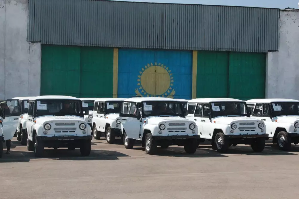 На территории Бурундайской авиабазы Пограничной службы КНБ Казахстана состоялось вручение ключей от военной автомобильной техники для пограничников, передает корреспондент Tengrinews.kz. На вооружение поступило 60 единиц автотехники, включая четыре КамАЗа и 56 УАЗов. "Нужда в новой технике была очень острой. Была необходима именно высокопроходимая техника. Закупленные автомобили направятся в десантно-штурмовые подразделения "Буран" и "Юг", а также в направлениях китайской и кыргызской границы. Сейчас можно сказать, что Пограничная служба обновлена техникой на 90 процентов", - отметил в ходе мероприятия заместитель начальника технической части регионального управления "Шыгыс" Ермек Бошаев. По его словам, выбор пал на автомобили российского производства из-за их надежности и высокой проходимости, так как на местах службы очень суровые климатические условия и нет дорог. Собеседник также отметил, что по нормам автомобиль УАЗ на границе проезжает от 140 до 180 тысяч километров, прежде чем пойдет на списание.