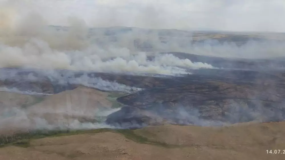 14 июля в Баянаульском районе, в 20 километрах от села Кызылтау, на открытой территории произошло загорание сухой травы ориентировочно на площади 800 гектаров.