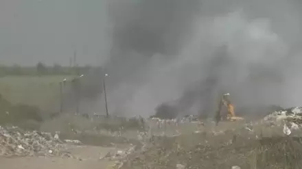Пожар на мусорном полигоне третьи сутки тушат в Уральске Кадр из видео