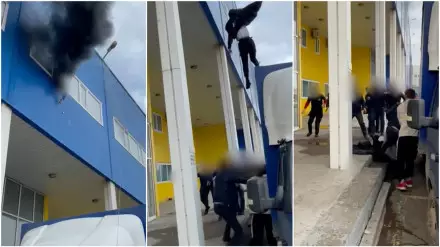 До прибытия спасателей из окна на втором этаже, спасаясь от пожара, выпала девушка 2001 года рождения - сотрудница мебельного цеха. Инцидент попал на видео.