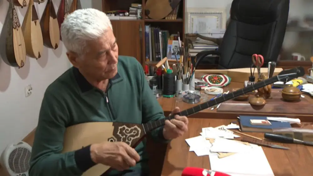 Пожилой мастер из Алматы создал 2500 национальных инструментов Кадр из видео "Хабар 24"
