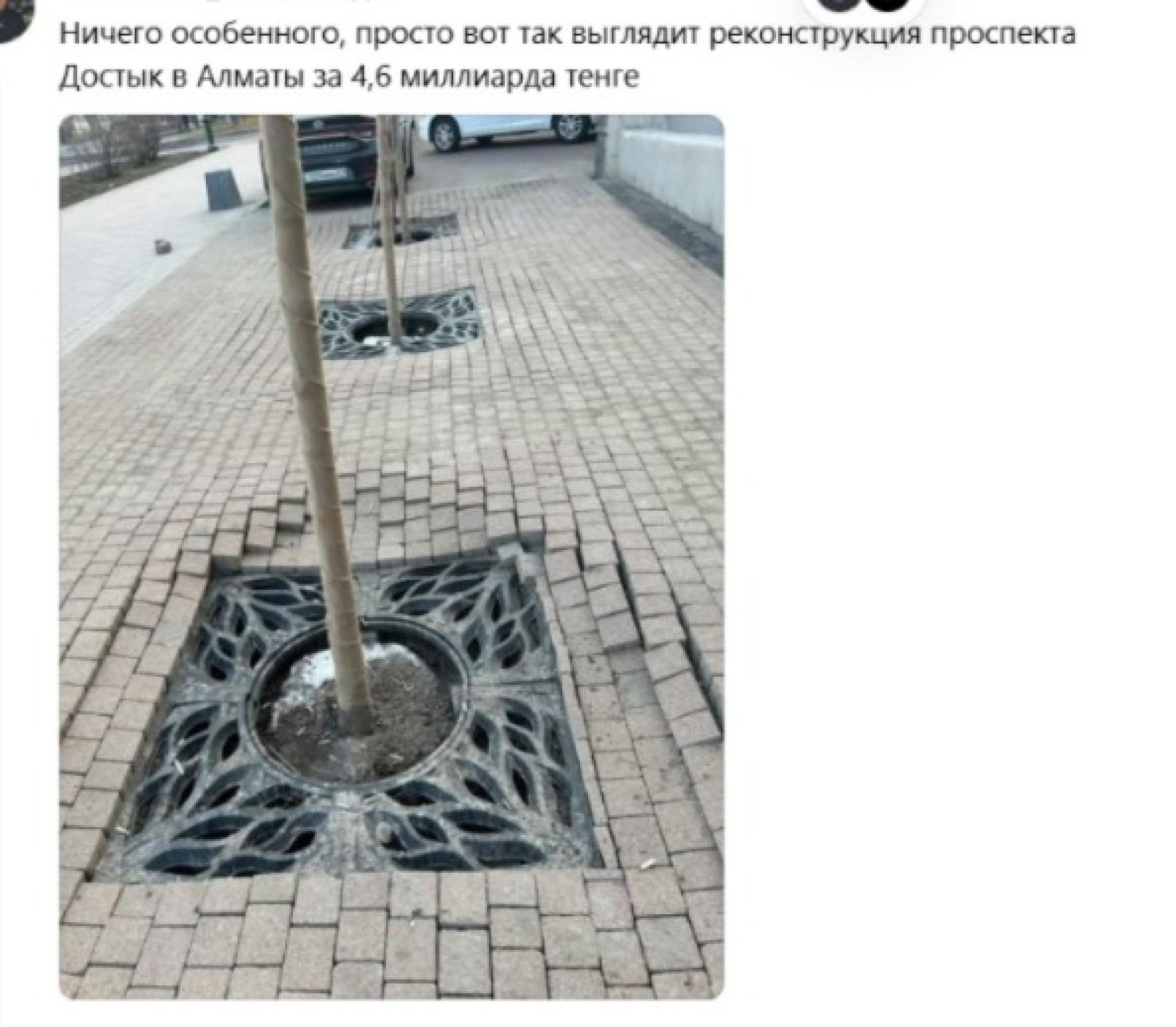 В социальной сети Тhreads были опубликованы фотографии с проспекта Достык в Алматы, где недавно закончились работы по благоустройству.