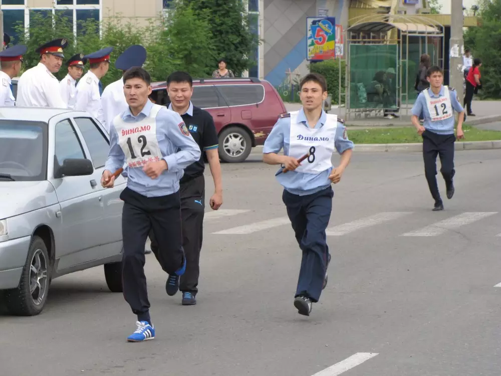 Полицейские пробежались по центральным улицам Семея и Усть-Каменогорска. Команды состояли из 6 человек, и каждый участник пробегал более восьмисот метров дистанции. Особенностью эстафеты стало то, что сотрудники принимали в нем участие в служебной форме. "Полицейским подолгу службы ежедневно приходиться преследовать и задерживать преступников, и условия данных соревнований максимально приближены к реальным", - пояснили в ДВД.