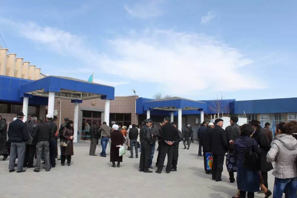 Полицейский стрелял во время беспорядков в Жанаозене "в шоковом состоянии" У здания, где проходит суд. Фото ©Индира Мырзабаева