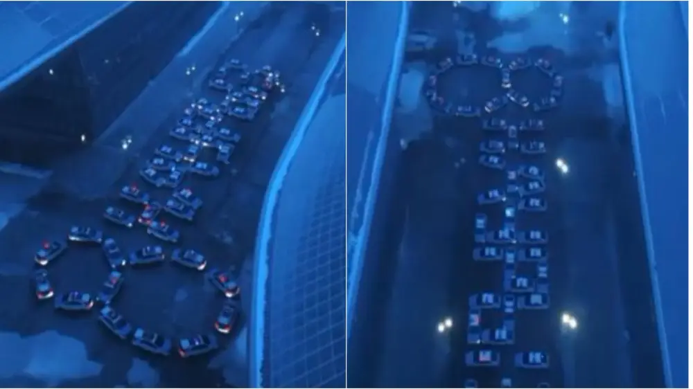 Стражи порядка столицы выстроили свои автомашины в виде цифры 8 и слова "Наурыз". Так они поздравили своих коллег и всех женщин с 8 Марта.