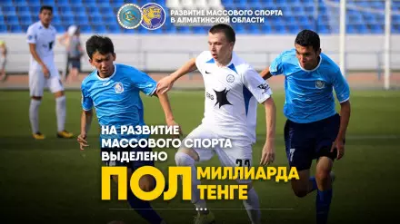"Регион уделяет особое внимание развитию массового спорта. В этих целях предусмотрено создание федераций массового спорта "Жетысуской любительской лиги", по таким видам спорта как: футбол, волейбол, баскетбол и другие в 20 районах, городах области и выделено полмиллиарда тенге", - говорит он.