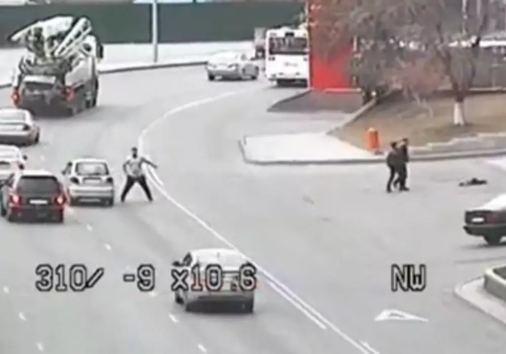 Полуголый мужчина против машин: Появилось видео с камер "Сергек" в Астане