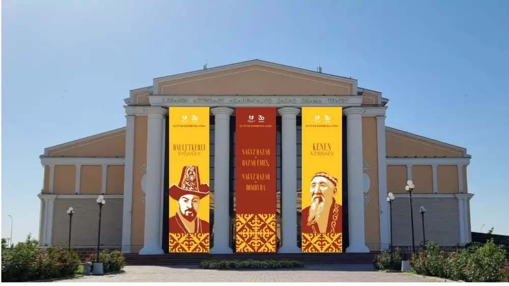 На зданиях Дворца торжеств "Туркестан" и казахского академического драматеческого театра имени Шанина вывесили огромные портреты великих кюйши в стиле поп-арт. Так креативно власти продемонстрировали роль легендарных казахских мастеров игры на домбре - Курмангазы, Дины, Таттимбета, Даулеткерея, Кенена Азирбаева, Биржан-сала, Казангапа, Жаяу мусы. Их изображения также появились на городских билбордах.