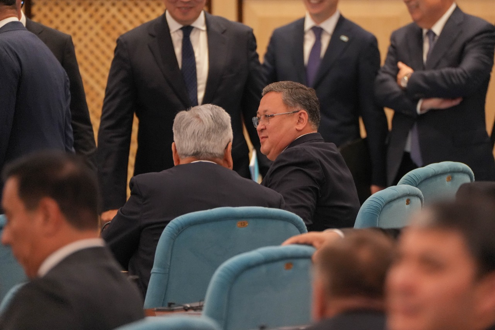 Можно заметить, что министр иностранных дел Мурат Нуртлеу прибыл на сегодняшнее мероприятие в хорошем настроении.