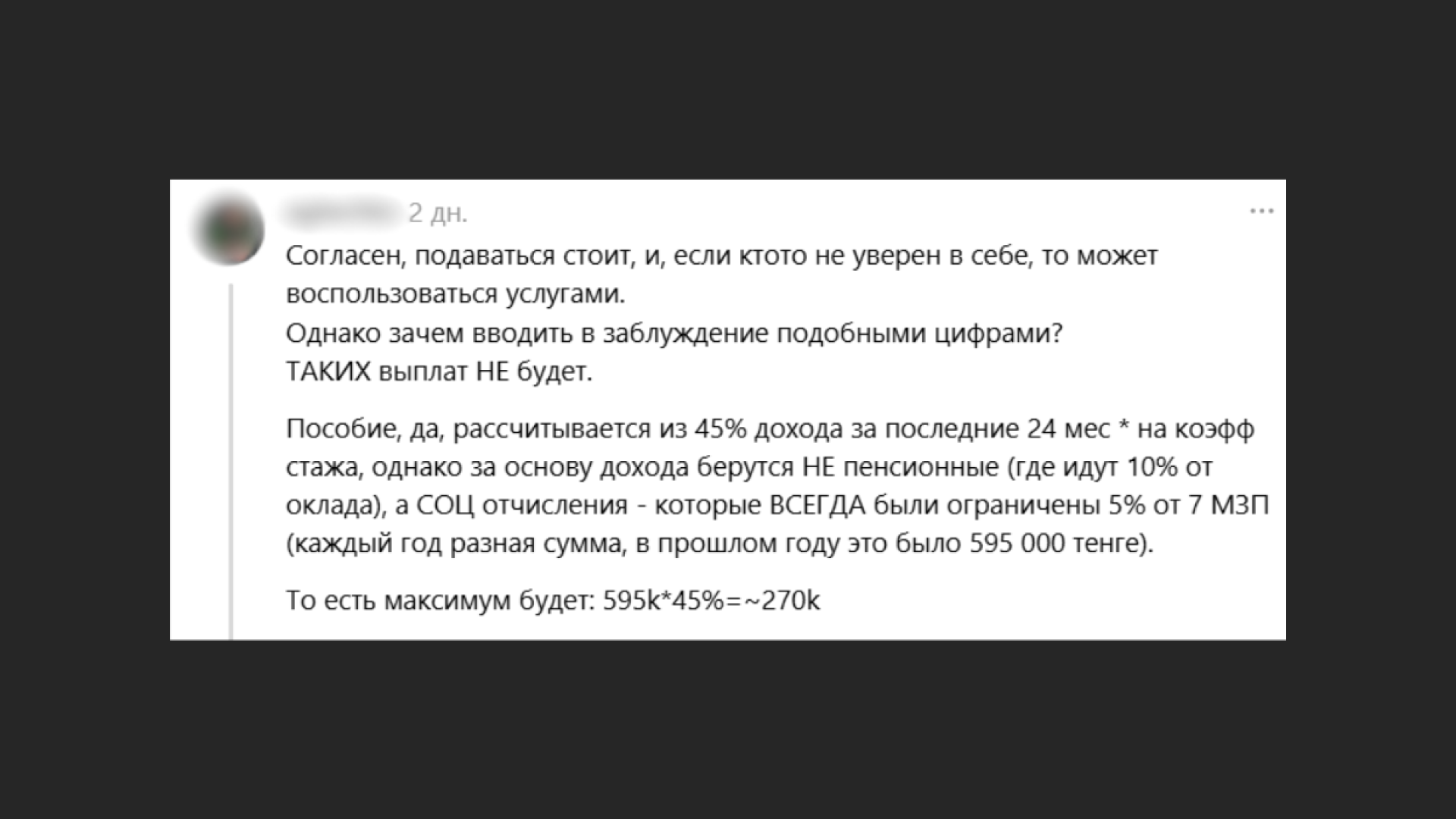 Вывод: Это означает, что цифра в 422 тысячи тенге, о которой пишут в соцсетях, не соответствует действительности, максимум, который можно получить, составляет 348 075 тенге в месяц.