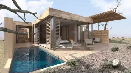 В бозжиринском амфитеатре планируется строительство бутик-отеля с виллами, бассейнами, рестораном, конюшней, вертолетной площадкой, SPA, фитнес-центром и "прочими зданиями и сооружениями для обеспечения комфортного отдыха согласно эскизному проекту".