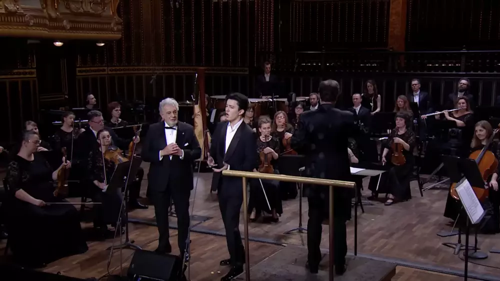 Появилось видео выступления Димаша Кудайбергена и испанского оперного певца Пласидо Доминго, передает Tengrinews.kz.