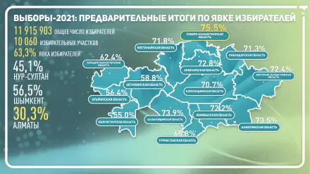 "Согласно оперативным данным, представленным областными избирательными комиссиями, городов республиканского значения, столицы, по состоянию на 22 часа времени столицы 10 января 2021 года, избирательные бюллетени получили 63,3 процента от общего количества избирателей, включенных в списки", - сообщил заместитель председателя Центральной избирательной комиссии Константин Петров.