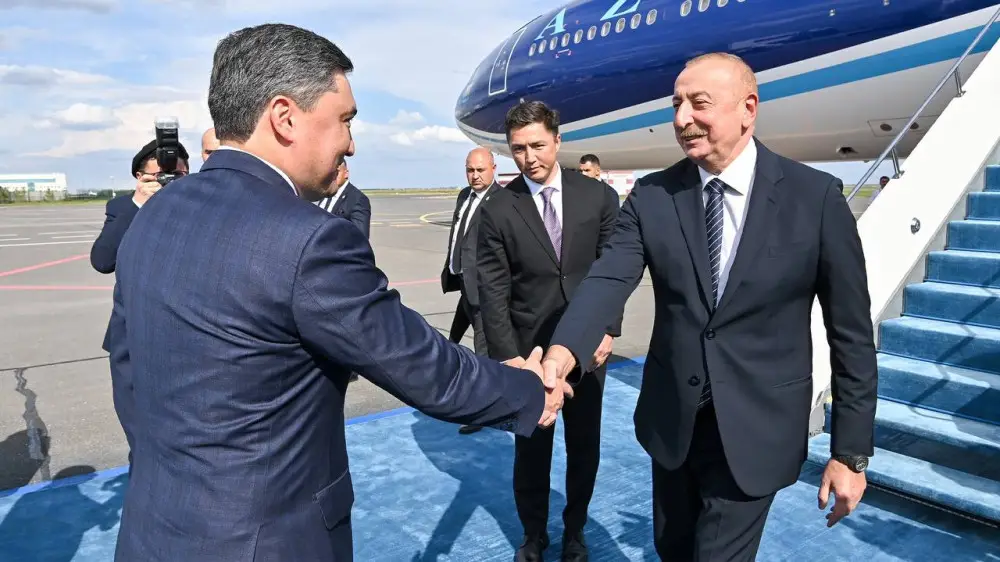 В столичном аэропорту Ильхама Алиева встретил премьер-министр Казахстана Олжас Бектенов.