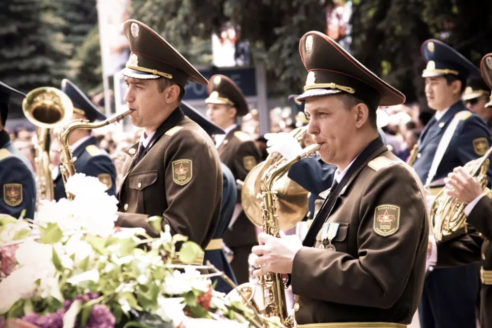 Как передал КазТАГ, в праздничном концерте участвует центральный военный оркестр Министерства обороны (МО) Казахстана, эстрадно-симфонический оркестр МО, фольклорная группа "Сазбаздар", танцевальные группы морской пехоты и аэромобильных войск республики. Ожидается, что завершится празднование выходом военных с 50-ю флагами Казахстана и залпами конфетти.