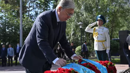 Глава государства также принял участие в церемонии возложения венков монументальному комплексу "1932-1933 жылдардағы ашаршылық құрбандарына тағзым" в Нур-Султане.