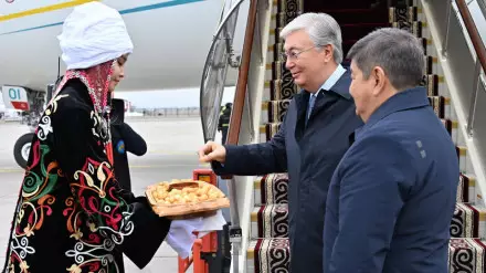 "Глава государства Касым-Жомарт Токаев прибыл с рабочим визитом в Республику Кыргызстан для участия в заседании Совета глав государств - участников СНГ.