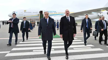В аэропорту Касым-Жомарта Токаева встретил президент Азербайджана Ильхам Алиев. Лидеры двух стран примут участие в церемонии открытия Центра детского творчества имени Курмангазы, встретятся с местными жителями и ознакомятся с проектом строительства Физулинской городской центральной больницы.