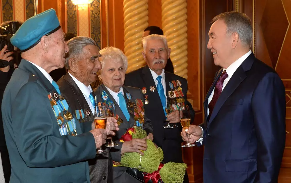 "Сегодня в этом зале наши ветераны, которые отстояли свободу и мирную жизнь страны. Мы вручаем вам награды - ордена "Барыс" и "Курмет". Это лишь малая толика того, что может дать вам нынешнее поколение. Вся страна, весь мир благодарны вам за то, что вы защитили его от фашизма", - сказал Президент.