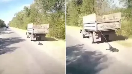 Видео инцидента было опубликовано 20 августа в паблике Kris_p_issyk. На кадрах видно, как собаку некрупной породы привязали за заднюю лапу к грузовику и тащат по трассе.