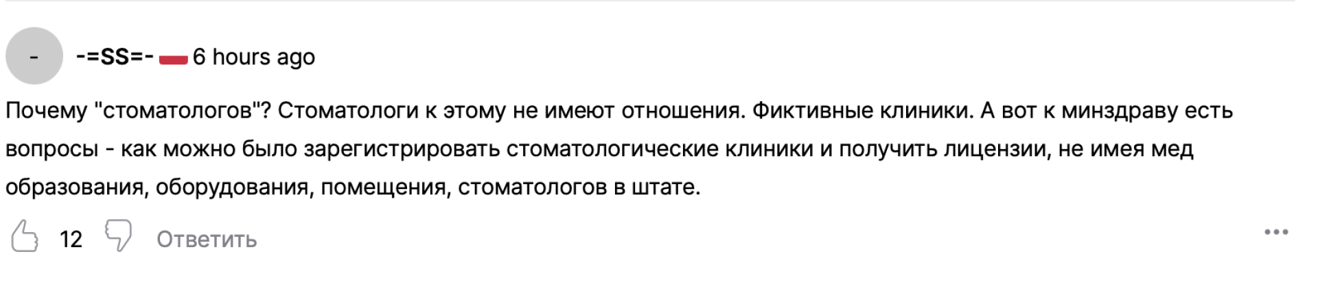Другая часть читателей выступила за сохранение возможности использовать излишки пенсионных накоплений на стоматологию - предлагали установить лимит в 1-1,5 миллиона тенге в год, чтобы не наказывать всех из-за отдельных случаев. Также звучали мнения, что речь идёт не о стоматологах как таковых, а о фиктивных клиниках, и адресовались вопросы к Минздраву - как могли выдавать лицензии без подтвержденного медобразования, оборудования, помещений и штатных специалистов.