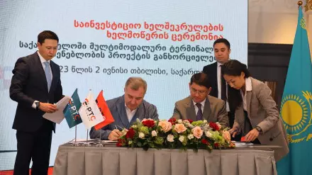 ТОО "PTC Holding" заключило 2 июня в Тбилиси инвестиционное соглашение о реализации инфраструктурного проекта, которое предполагает строительство мультимодального терминала в грузинском порту Поти мощностью 80 тысяч контейнеров (в 20-футовом эквиваленте) в год.