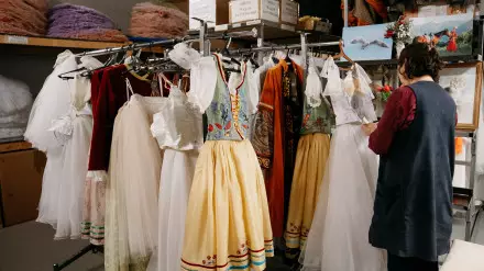 Костюмерный цех в "Астана Опера" хранит в себе выдающиеся художественные произведения. Здесь над каждым из костюмов воркуют специалисты костюмерного цеха, которые отвечают за хранение и подготовку образов. В другом крыле хранится огромное количество декораций, благодаря которым сцена преображается за часы: многотонные декорации вырастают при помощи мудреных лебедок полетных устройств, подъемно-опускных площадок.