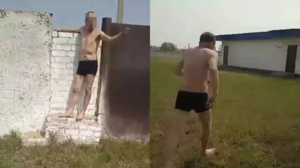 Пьяный "десантник" в трусах "охранял" стадион в Павлодарской области, передает корреспондент Tengrinews.kz. Об этом сообщает Telegram-канал Рolisia.kz.