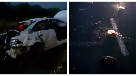 В результате ДТП четыре пассажира легковушки погибли на месте происшествия, водитель и ребенок доставлены в медицинское учреждение.