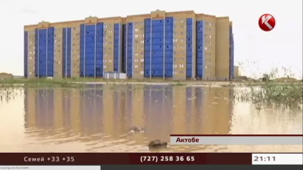 Раскритикованный Назарбаевым микрорайон не выдержал дождя Многоэтажки в микрорайоне "Нур Актобе". Кадр телеканала КТК