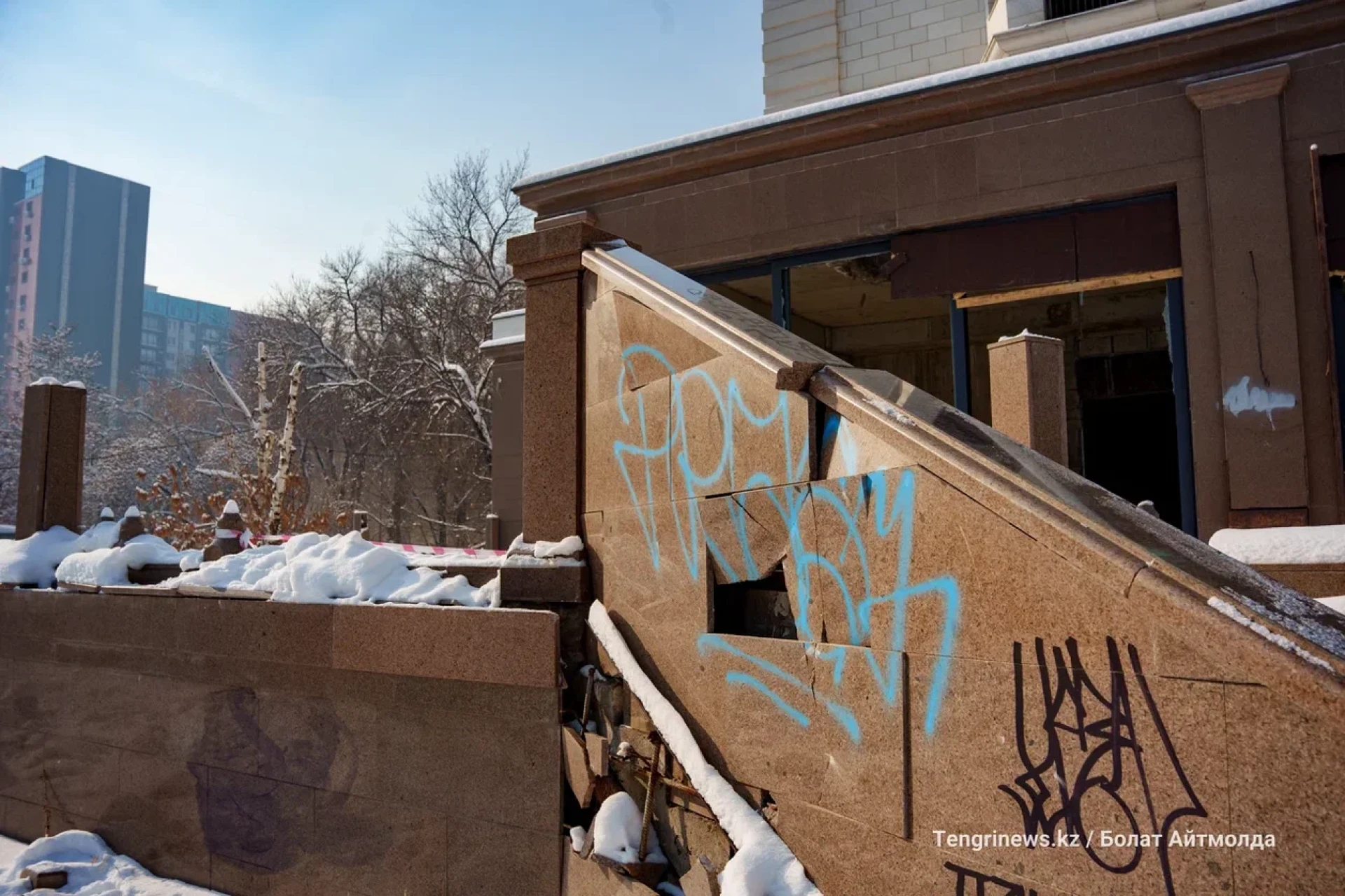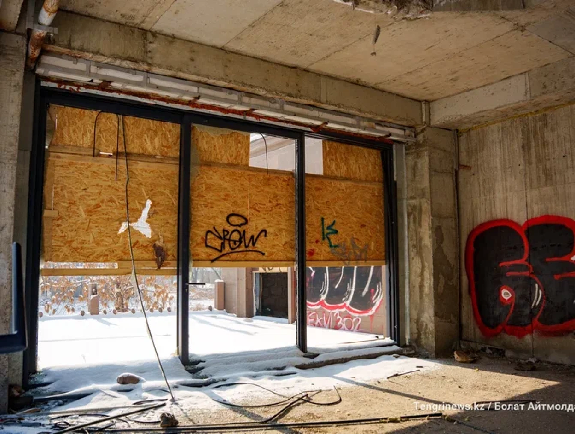 Корреспонденты Tengrinews.kz прогулялись по недостроенному объекту, который с недавних пор считается государственной собственностью и вот что мы там увидели.