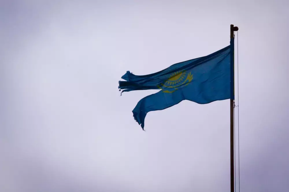 Разорванный флаг Казахстана развевается над подразделением Генеральной прокуратуры