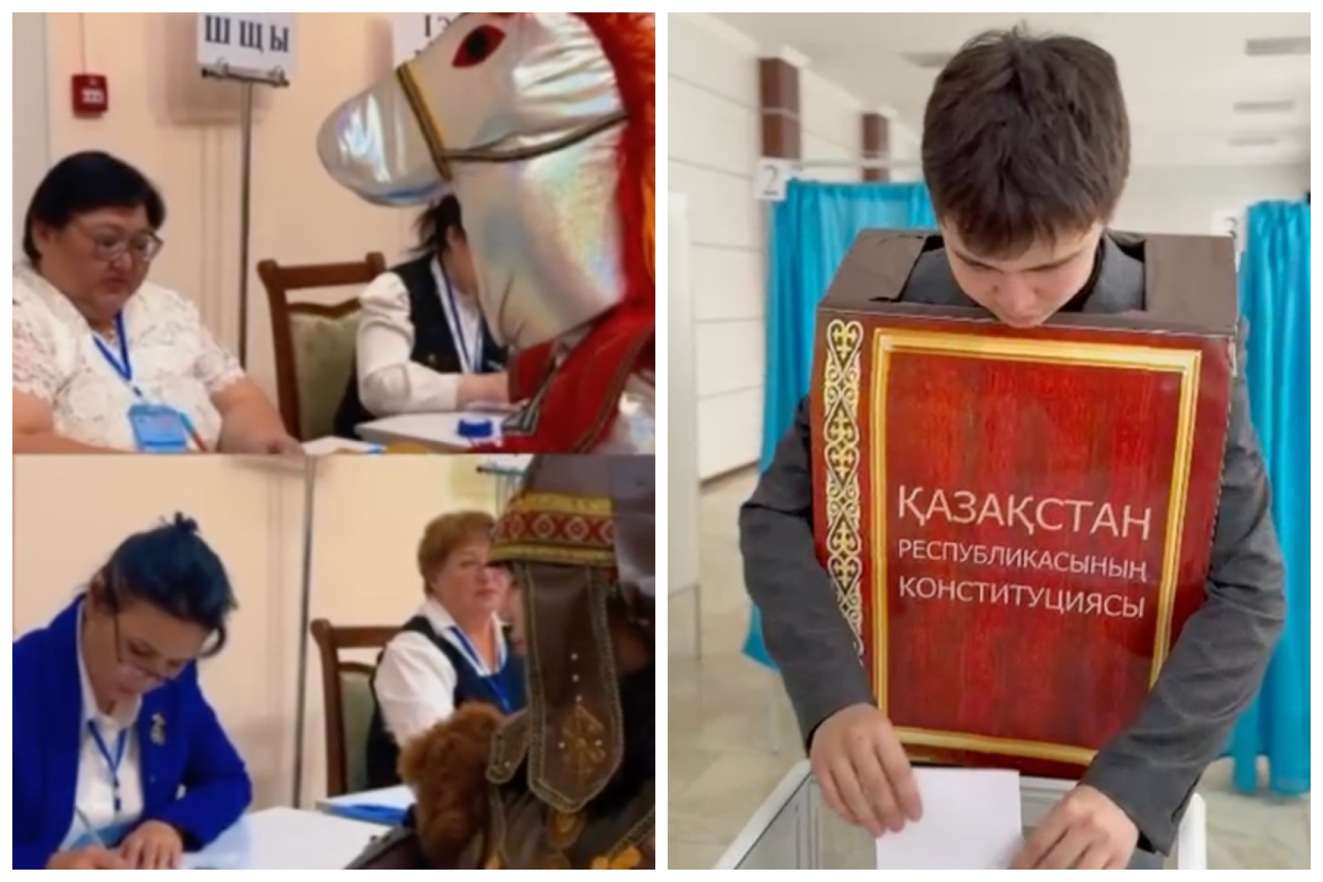 В Астане на участке заметили необычную пару — девушка в домашнем халате пришла голосовать вместе с робопсом. Похожий перфоманс уже был на референдуме по АЭС в 2024 году.