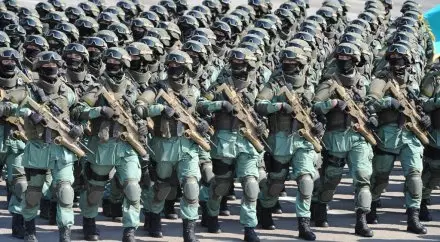 Отметим, в военном параде было задействовано около 5 тысяч военнослужащих, порядка 200 единиц вооружения и военной техники, 70 вертолетов и самолетов военной авиации.