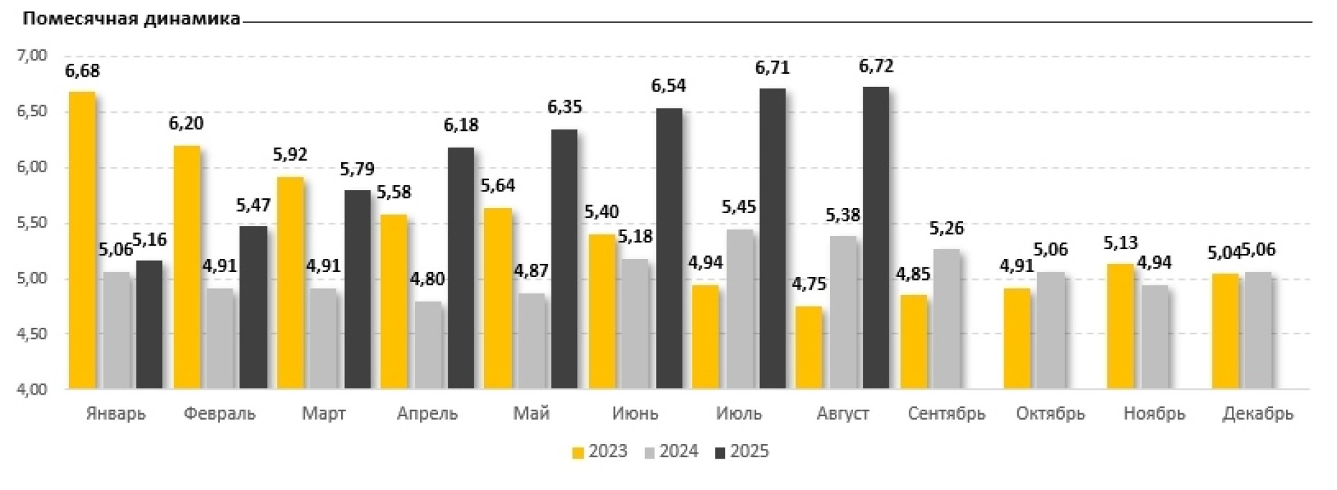 С начала 2025 года российский рубль заметно укрепился: в январе его курс составлял 5,16 тенге, а к августу вырос на 30 процентов и достиг 6,72 тенге. В сентябре он держится на уровне около 6,65 тенге. Несмотря на рост, спроса на рубль в стране нет — обменные пункты фиксируют рекордные объёмы его сдачи, передает Tengrinews.kz со ссылкой на данный аналитиков FinProm.