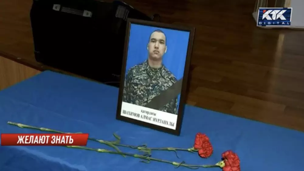 По официальной версии, смерть солдата наступила от удара по голове железным каркасом палатки. В августе прошлого года служащие воинской части 5571 находились на алматинском полигоне на учениях. Боевую подготовку проходили 34 солдата Нацгвардии. Внезапно началась сильная буря, срочников стали эвакуировать. Алмас помогал вытаскивать из упавших палаток сослуживцев. Он спас троих, но погиб сам. А после посмертно был награжден медалью "За отвагу". Но родные отказались от награды. Они уверены: на теле их сына множество ран, которые следствие пыталось скрыть. После эксгумации независимые эксперты должны выяснить, что же произошло на полигоне.