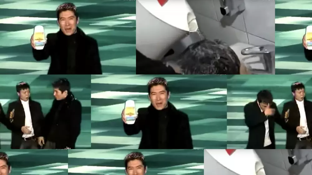 В "рекламе" выдуманного шампуня "Жумайсынба" (дословный перевод - "не помоешь ли?") молодой человек рассказывает, как "чудо-средство" помогло ему избавиться от перхоти и теперь он "может спокойно здороваться с братками и радоваться жизни".