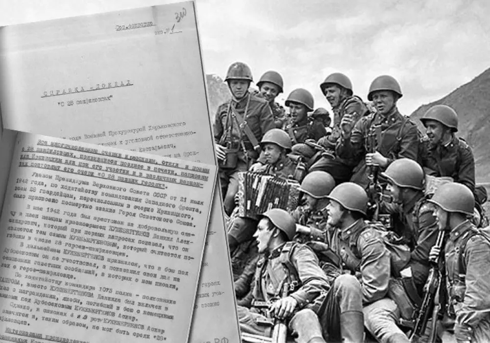 Справка-доклад главного военного прокурора Н. Афанасьева "О 28 панфиловцах" от 10 мая 1948 года по результатам расследования Главной военной прокуратуры, хранящаяся в фонде прокуратуры СССР:
