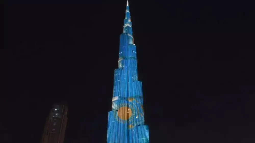 Как отмечает телеканал, иллюминация в виде небесно-голубого казахстанского флага демонстрировалась на самом высоком здании в мире около одной минуты.