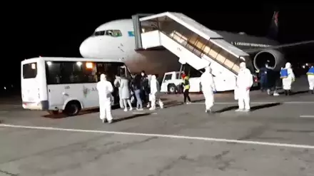 Самолет с эвакуированными из Китая приземлился в Алматы Кадр из видео