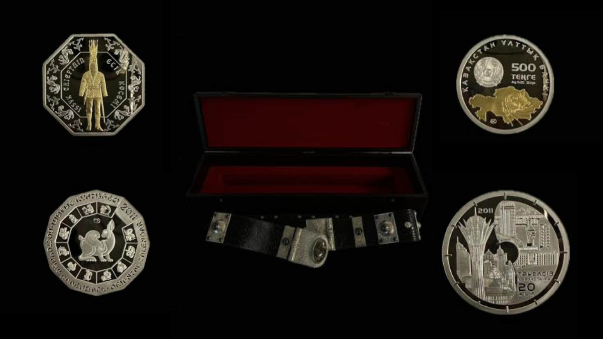 Кроме того, на торги выставили четыре особых лота – коллекционные монеты, сабля и ремень с национальным орнаментом. Судя по документам, эти предметы изъяли из дома, описание которого совпадает с особняком осуждённого бывшего главы КНБ Карима Масимова.