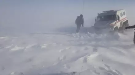 Сообщается, что 18 января на участке трассы наблюдается сильный ветер, буран, метель, плохая видимость. Сейчас дорогу чистят девять единиц техники, а водители ожидают ее открытия на станции Достык.
