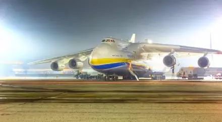 Ан-225 "Мрия" - транспортный реактивный самолет сверхбольшой грузоподъемности разработки ОКБ имени О. К. Антонова. Самолет был спроектирован и построен в СССР на Киевском механическом заводе в 1984-1988 годах. Масса самолета - 285 тонн, длина - 84 метра. Существует в единственном экземпляре.