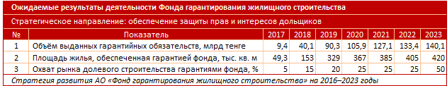 Как отмечает издание, что происходит на этом рынке сейчас - трудно понять. К примеру, один из самых популярных и надежных каналов долевого строительства - Фонд гарантирования жилищного строительства (ФГЖС) - намерен увеличить объем выданных гарантийных обязательств с 40,1 миллиарда в 2018-м до 140,1 миллиарда в 2023 году. Дело в том, что это единственный инструмент, являющийся подушкой безопасности и для застройщиков, и для дольщиков. Дольщики стали понимать, что вероятность рисков долгостроя при работе с ФГЖС сведена к нулю. Акиматы, предупреждая население, также снимают риск социальных напряжений на местах. Застройщики же, используя средства дольщиков, получают и беспроцентный кредит на продолжение строительства.