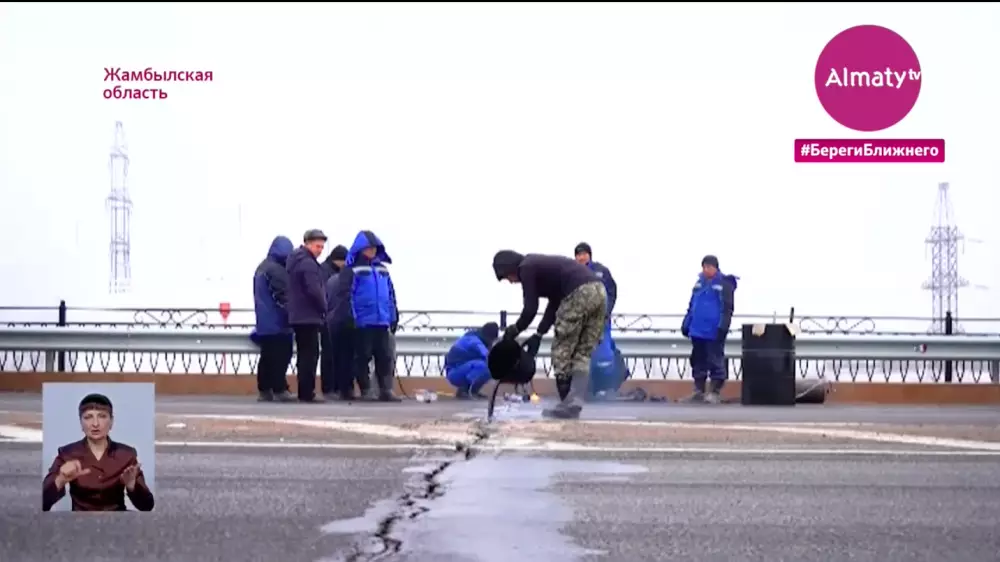 Мост длиной 315 метров в Таразе построили три года назад. Он считается самым крупным в регионе. На строительство моста потрачено около двух миллиардов тенге. Каждый день здесь проезжают больше четырех тысяч машин. Сооружение является единственным проездом, соединяющим микрорайоны с жилым массивом Дальняя Карасу. Теперь этот участок представляет реальную угрозу, считают местные жители. На мосту появилась 10-сантиметровая трещина, что напугало водителей.