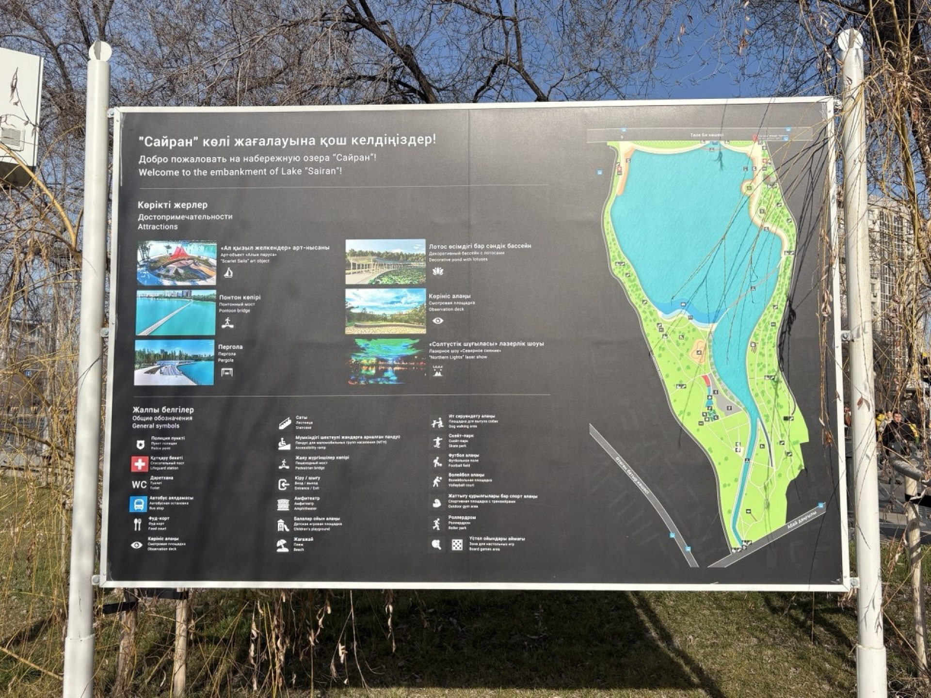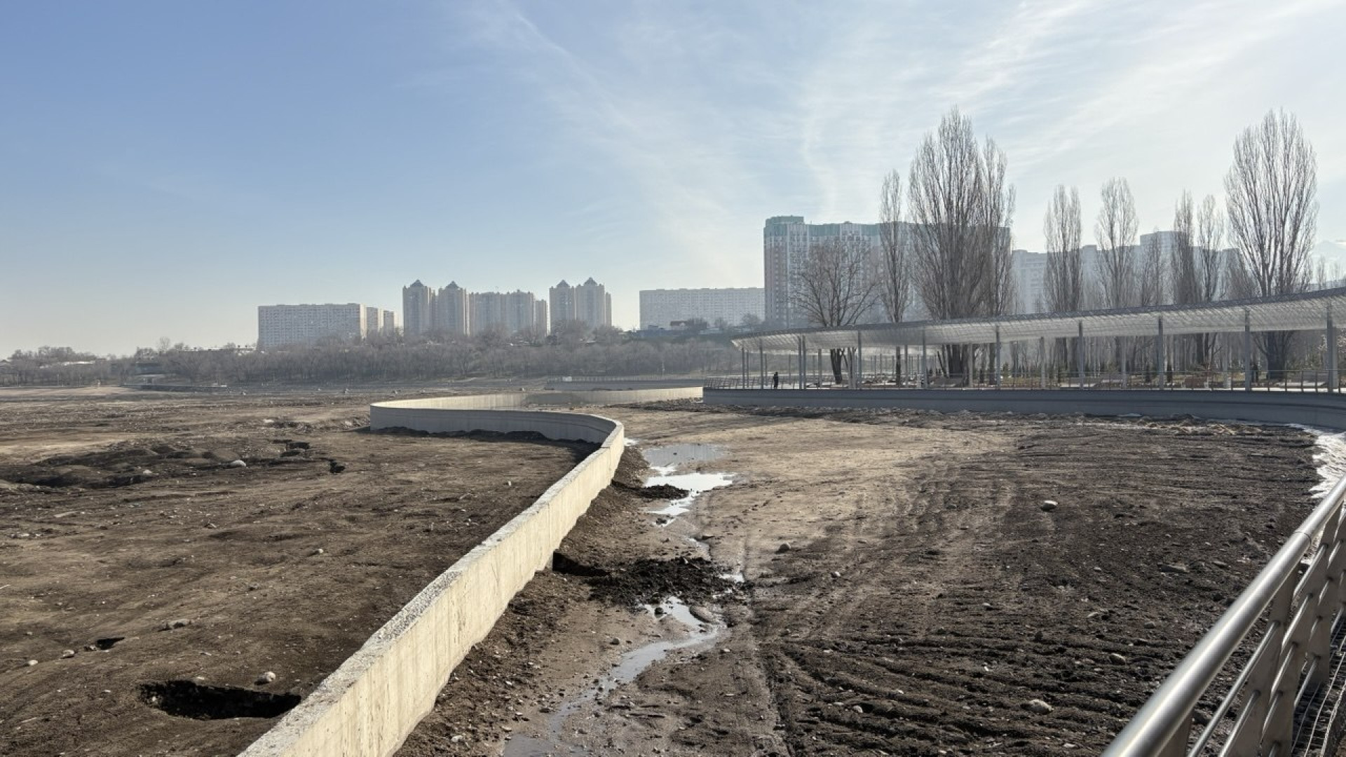 "Перед перголой мы создаём водоём, который не будет спускаться на зиму — в нём планируется высадка лотосов. Проблема в том, что водные растения могут существовать только при стабильном уровне воды, тогда как Сайран — это водохранилище, где невозможно сохранять воду зимой", — объясняла она тогда.