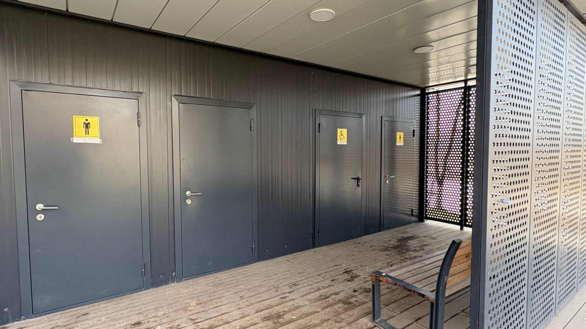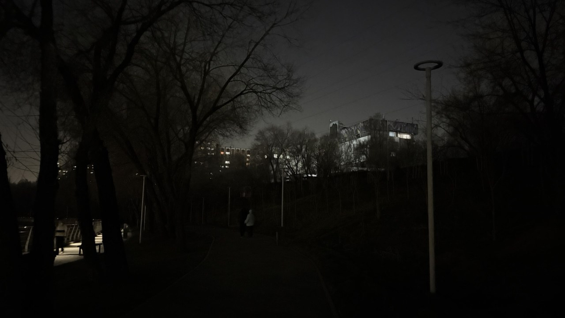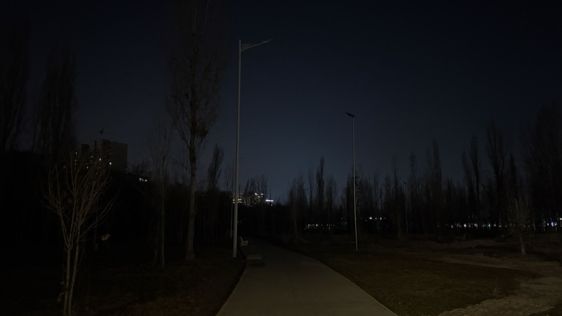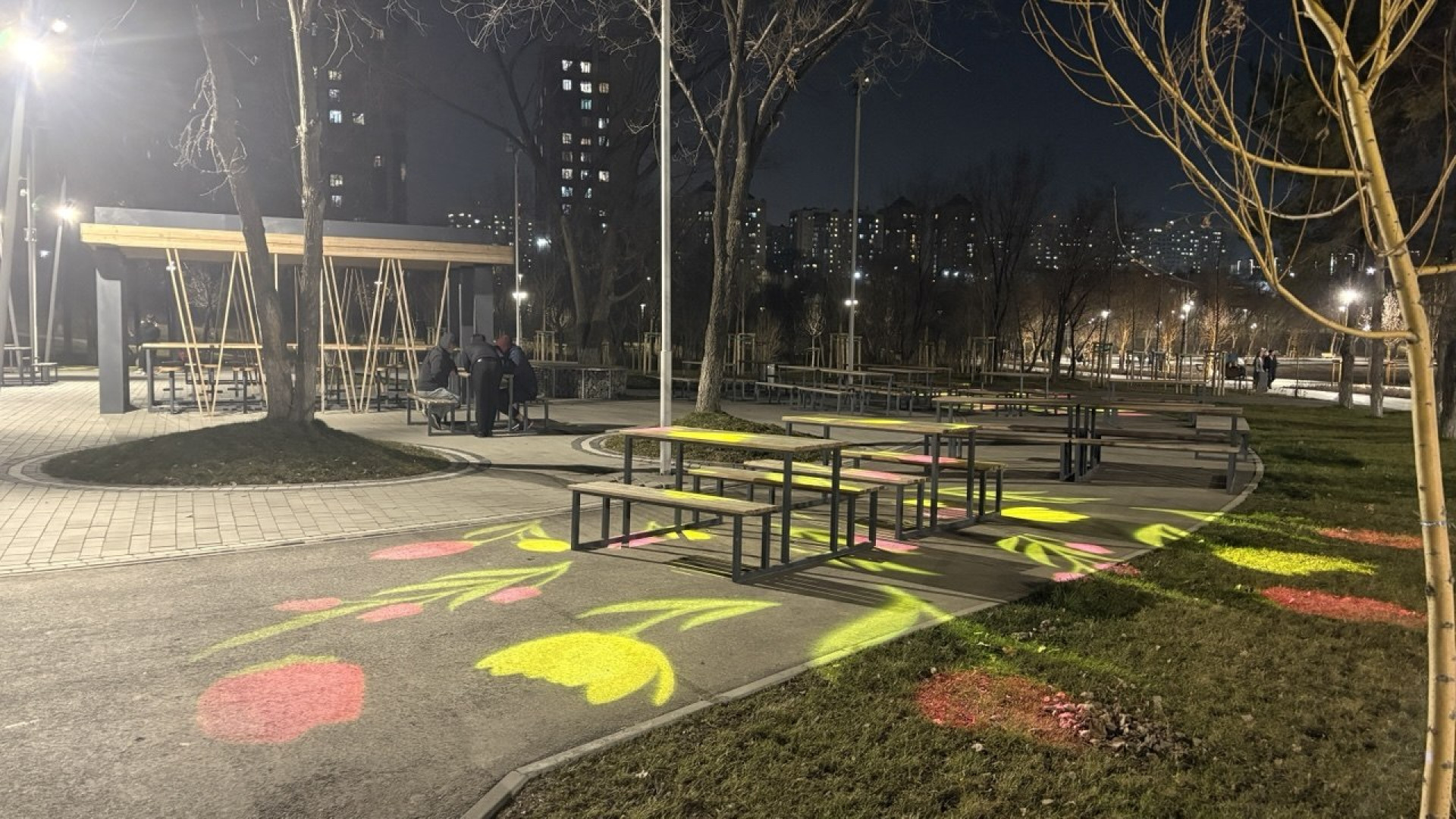 Однако во время нашего визита выяснилось, что на западной стороне на отдельных участках освещение отсутствует. В темноте оказался и тот самый закрытый санузел. Учитывая, что полицейские пункты по-прежнему пустуют, такие неосвещённые зоны вызывают вопросы к безопасности вечерних прогулок.
