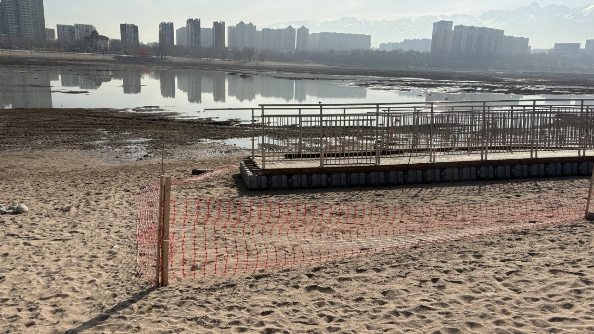 На западном берегу открывается необычная картина: секции понтонных мостов лежат прямо на песке. Вернуть их на воду власти обещают после того, как озеро наполнится.
